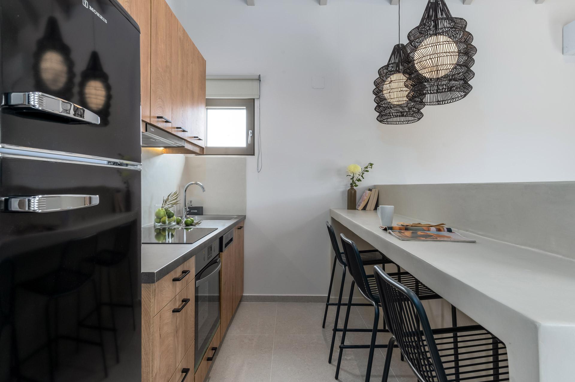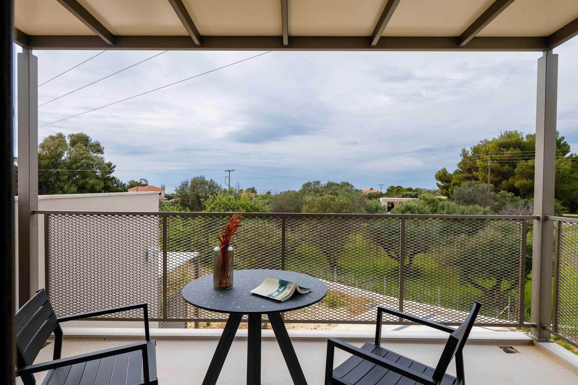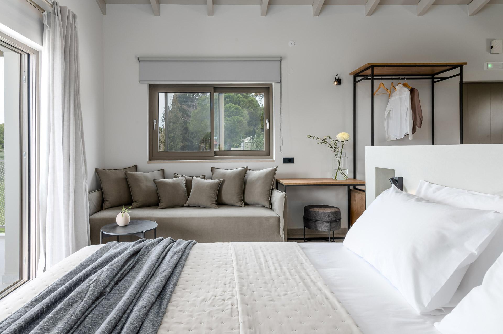 Ο Άνεμος είναι μια σουίτα στούντιο 35 τετραγωνικών μέτρων που βρίσκεται στον πρώτο όροφο του κτιρίου στο πίσω μέρος του ακινήτου. Αποτελείται από έναν ενιαίο χώρο καθιστικού με κουζίνα που χωρίζεται από τον χώρο ύπνου με ένα μπαρ πρωινού. Ένας καναπές στο καθιστικό μπορεί να μετατραπεί σε μονό κρεβάτι για έναν επιπλέον επισκέπτη. Οι συρόμενες πόρτες ανοίγουν σε μια βεράντα μπαλκονιού, που προσφέρει τραπεζαρία και καναπέ, όπου μπορείτε να απολαύσετε τη θέα ανάμεσα στα ελαιόδεντρα και προς τη θάλασσα πέρα.