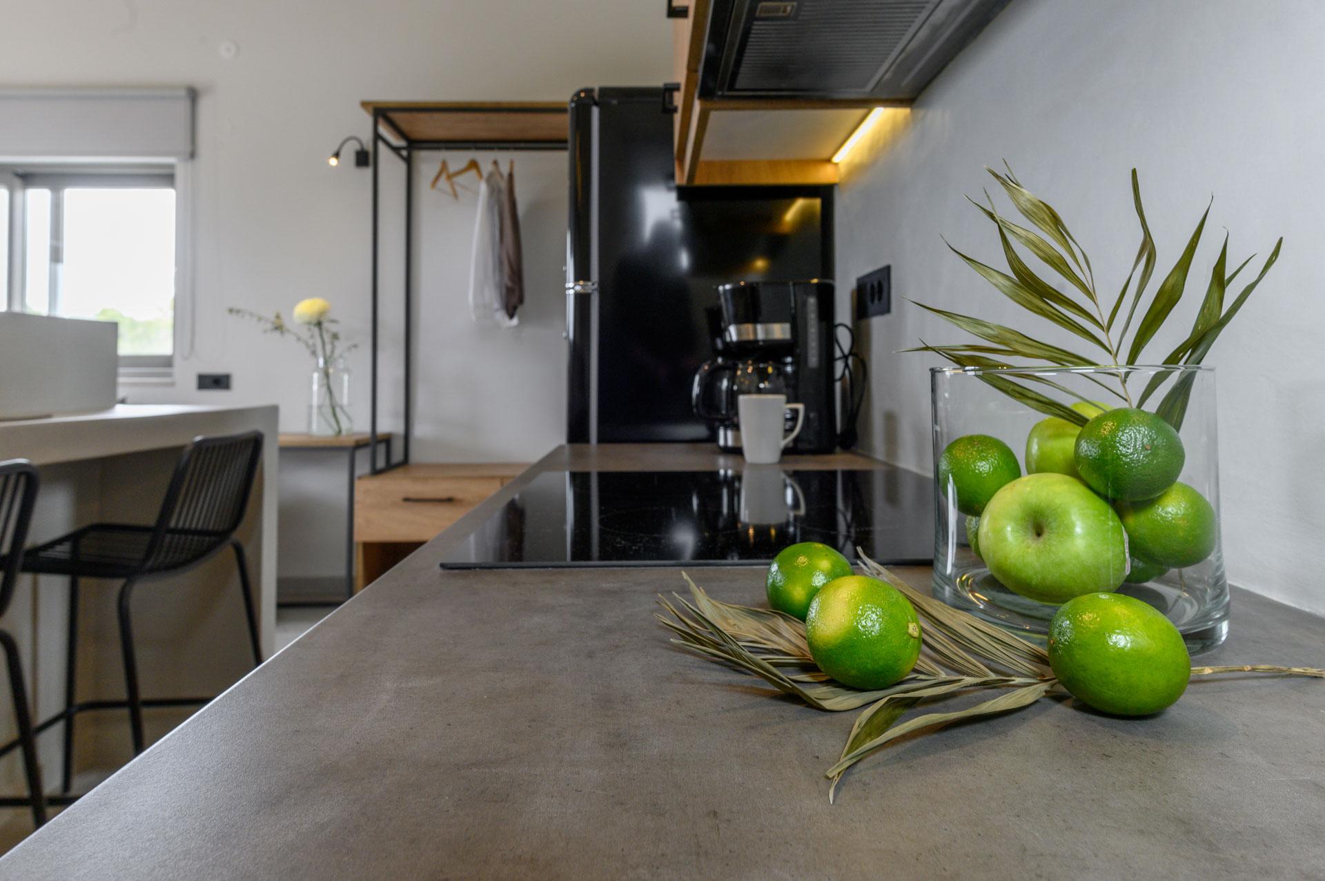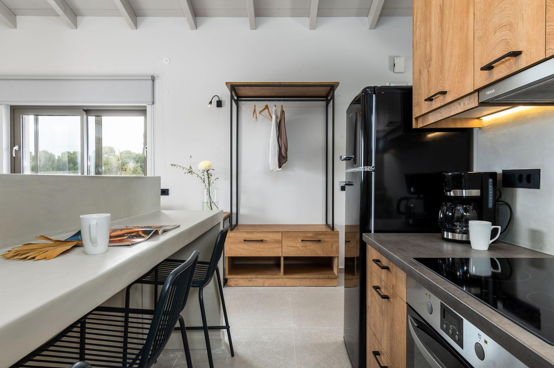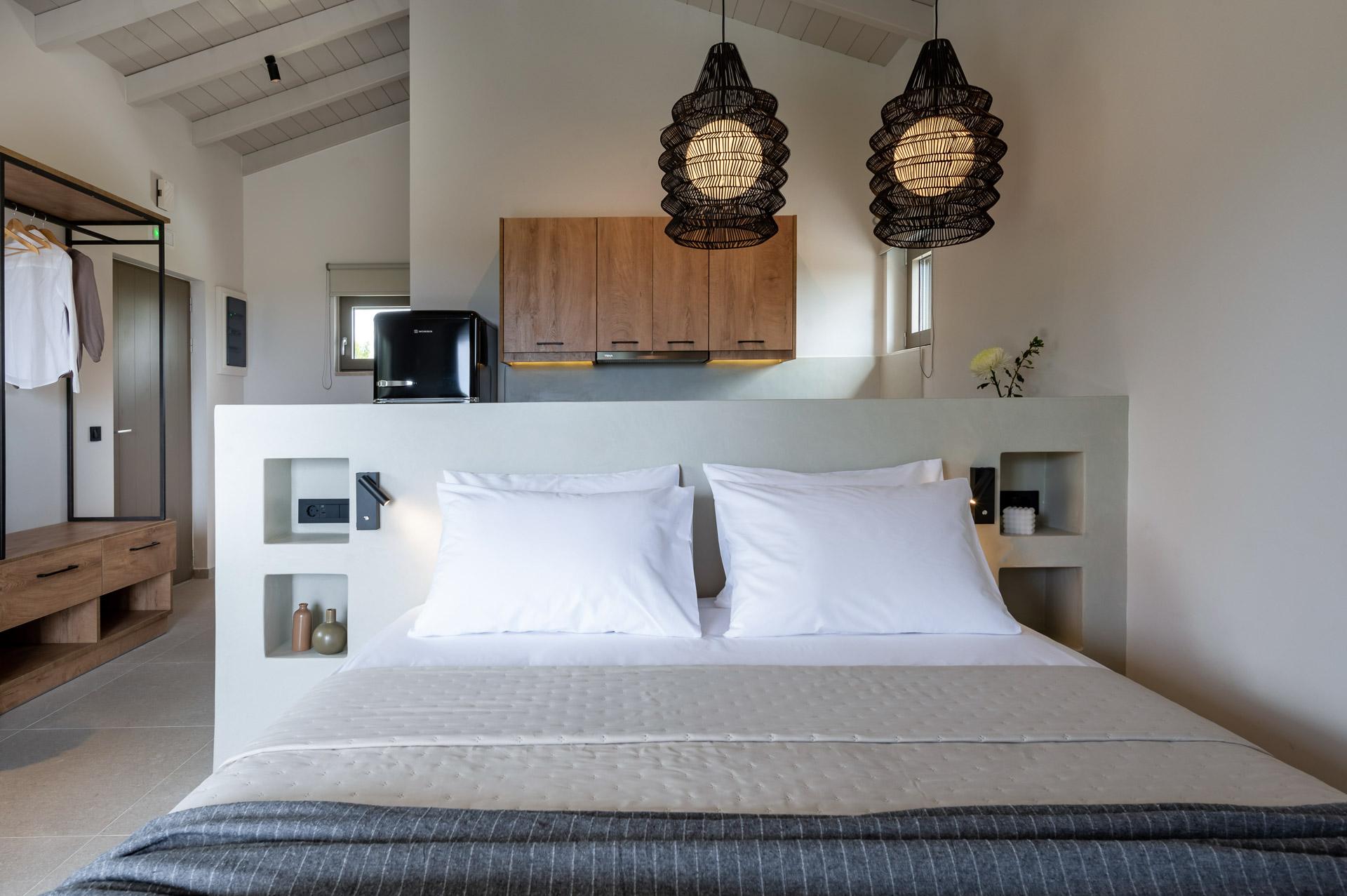 Ο Άνεμος είναι μια σουίτα στούντιο 35 τετραγωνικών μέτρων που βρίσκεται στον πρώτο όροφο του κτιρίου στο πίσω μέρος του ακινήτου. Αποτελείται από έναν ενιαίο χώρο καθιστικού με κουζίνα που χωρίζεται από τον χώρο ύπνου με ένα μπαρ πρωινού. Ένας καναπές στο καθιστικό μπορεί να μετατραπεί σε μονό κρεβάτι για έναν επιπλέον επισκέπτη. Οι συρόμενες πόρτες ανοίγουν σε μια βεράντα μπαλκονιού, που προσφέρει τραπεζαρία και καναπέ, όπου μπορείτε να απολαύσετε τη θέα ανάμεσα στα ελαιόδεντρα και προς τη θάλασσα πέρα.
