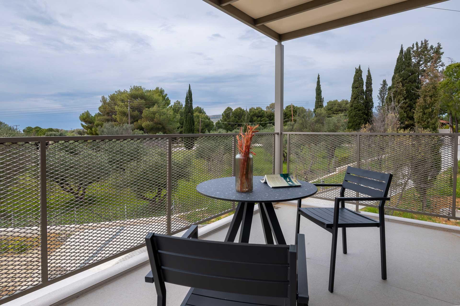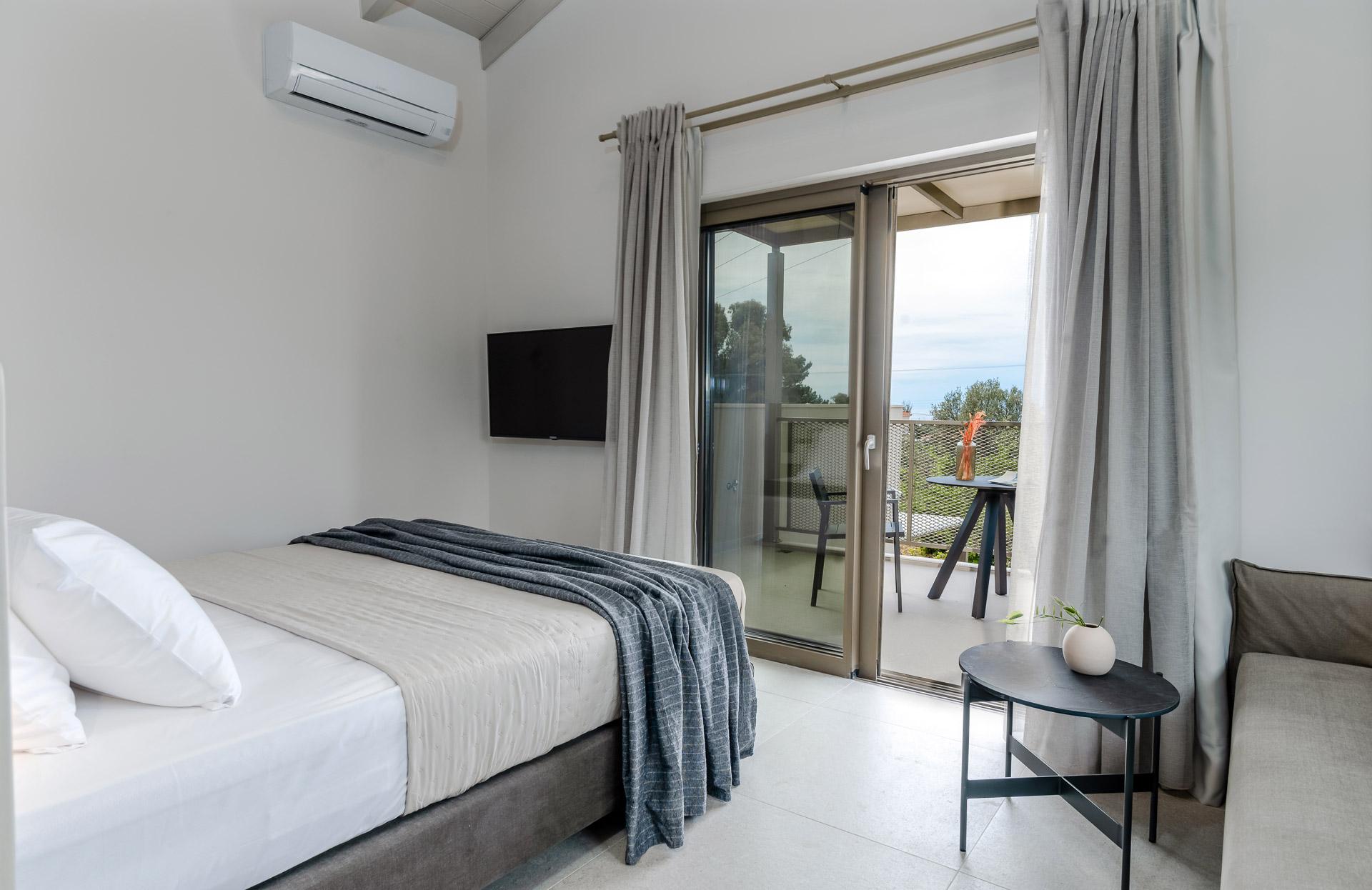 Περπατώντας κάτω από τη σύγχρονη αψίδα για να μπείτε στο συγκρότημα του Ακρωτηρίου, σας εντυπωσιάζει αμέσως η μεγάλη πισίνα που απλώνεται μπροστά σας προς το Ιόνιο Πέλαγος στο βάθος. Ένας φαρδύς διάδρομος χωρίζει τις δύο πρώτες σουίτες εκατέρωθεν σας, καθώς κατεβαίνετε τα σκαλοπάτια με ήπια κλίση προς τη μεγάλη βεράντα και την πισίνα, που περιβάλλεται από άνετες ξαπλώστρες. Στην άλλη άκρη θα βρείτε το τρίτο κτίριο, που στεγάζει τρεις ξεχωριστές σουίτες. Όλο το συγκρότημα περιβάλλεται από ψηλά ώριμα δέντρα, που παρέχουν άφθονη σκιά και παφλασμένη ηλιοφάνεια. Η μεγάλη πισίνα (65 τ.μ.) έχει σύγχρονο ορθογώνιο σχήμα και περιβάλλεται από επίπεδη πλακόστρωτη βεράντα επιπλωμένη με άνετες ξαπλώστρες. Ένα υπαίθριο ντους είναι διαθέσιμο για να ξεπλυθείτε μετά το κολύμπι ή από τις ημέρες στην παραλία!