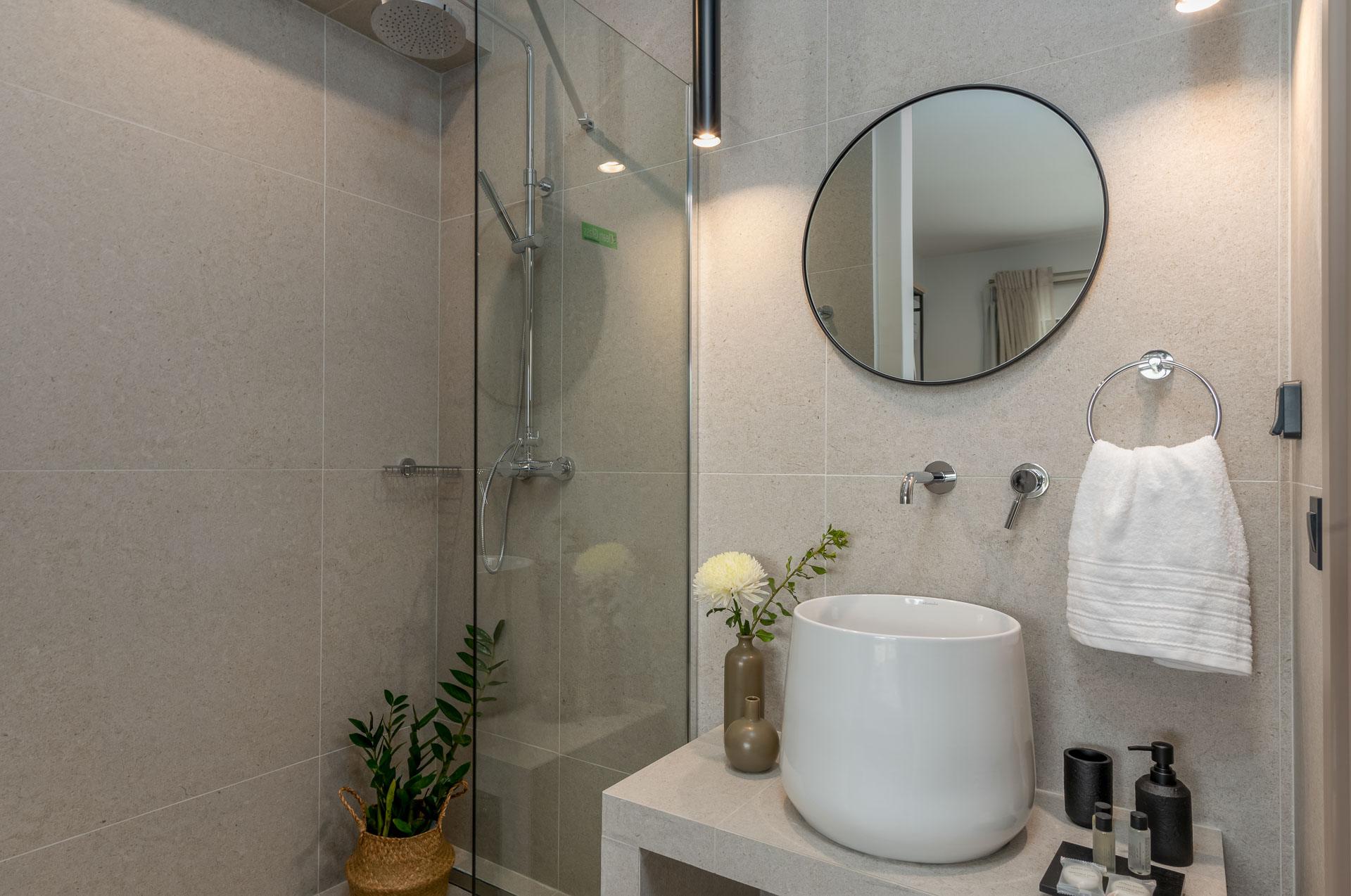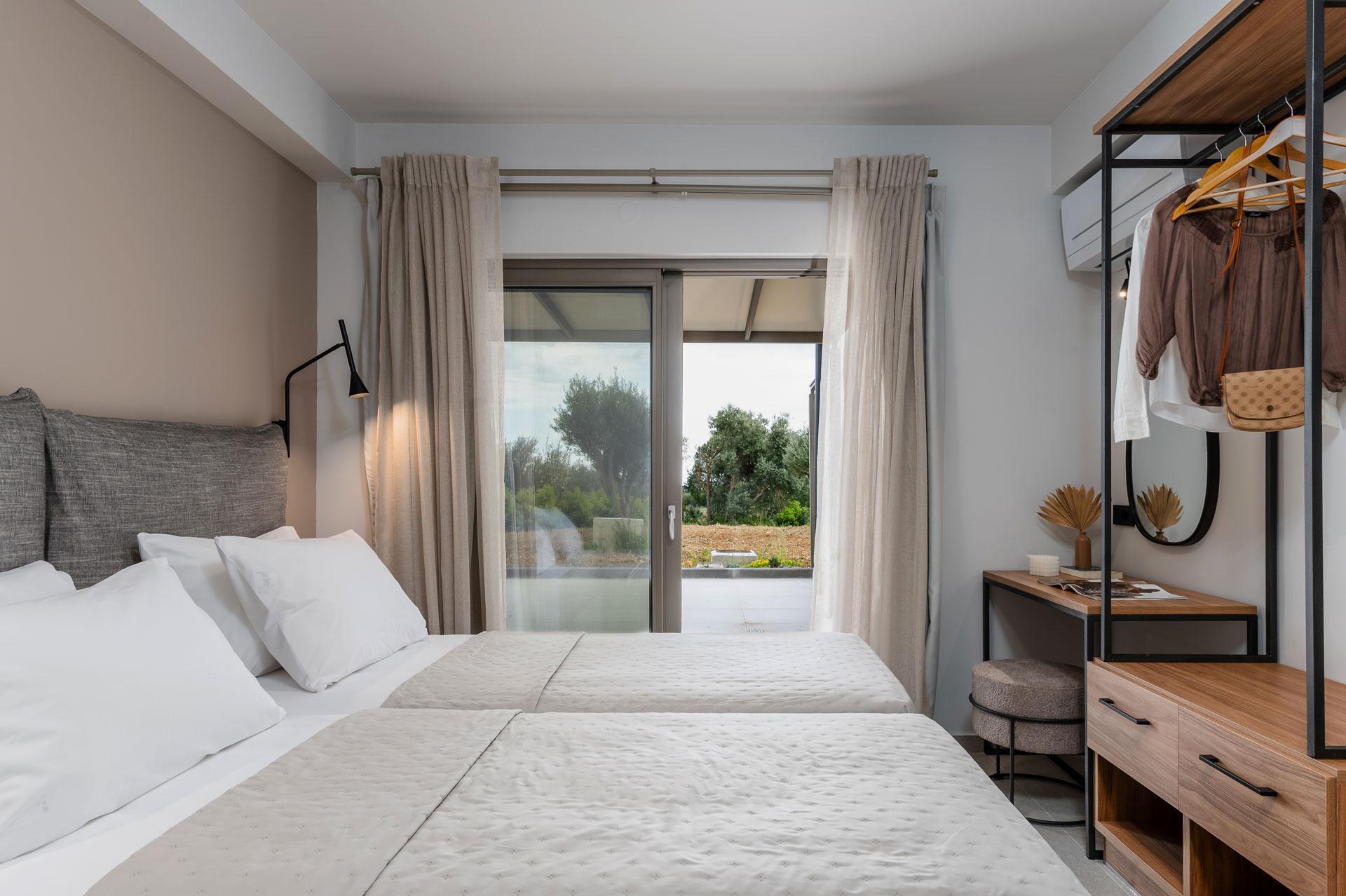 Το Πέλαγος είναι μια σουίτα 35 τετραγωνικών μέτρων στο ισόγειο του κτιρίου στο πίσω μέρος του καταλύματος. Μπαίνετε στην κουζίνα και το καθιστικό, το οποίο διαθέτει συρόμενες πόρτες που ανοίγουν σε μια εξωτερική βεράντα για φαγητό και χαλάρωση. Το υπνοδωμάτιο, που περιέχει 2 μονά κρεβάτια τα οποία μπορούν να διαχωριστούν ή να τοποθετηθούν κοντά το ένα στο άλλο, έχει συρόμενες πόρτες σε έναν ακόμη εξωτερικό χώρο. Το ντους είναι κρυμμένο στο πλάι του υπνοδωματίου, με το WC σε ξεχωριστό δωμάτιο πίσω από μια πόρτα.